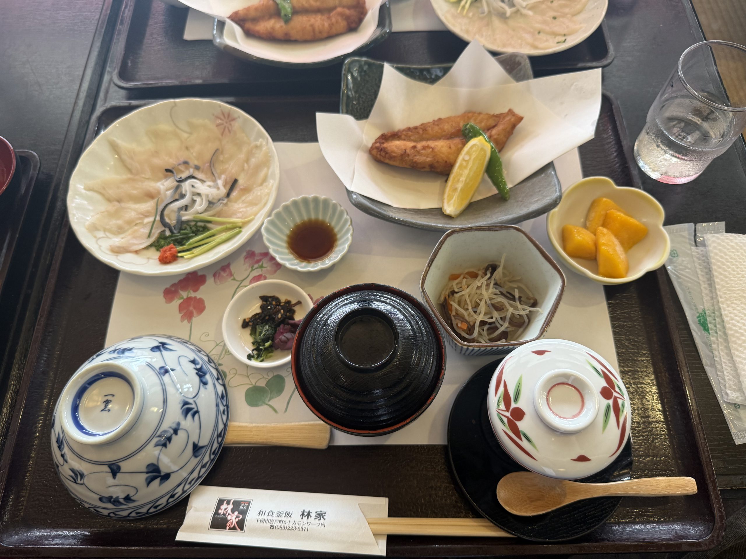 コロナ禍入社の社員やベテラン組までウキウキでした。大雨で少々遅れて到着した唐戸市場では、ふぐの定食を食べました。