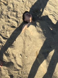 炎天下でのビールに肉は最高の一言!・・・・・・・、ん?・・・、BBQの写真ではない?あーーーーー、これはBBQ後既に酔っ払いパンツ1丁で海に浸かり砂に埋もれたがっていたので埋めた写真ですね(笑)ちなみに酔っ払ってしまった時のキンキンに冷えたかき氷は格別なので是非お試しあれヽ(´▽`)/