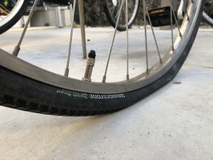 写真のこの空気を入れるバルブ、これが当たり前ですがついてないんですよ!どうやらタイヤ全体がゴムだったり、中に特別樹脂が詰まってたりするみたいです。従来の自転車って乗らずに放置していても自然と空気は抜けていき、いざ乗る!って時に空気が入って無くて乗れなかったり、いつの間にかパンクしていて空気を入れても入れてもすぐしぼんだり・・・ってのが、自転車あるあるだったんですがね。