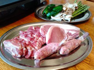 お昼ご飯は地元企業さんから仕入れたお肉をそれぞれのご家庭で!