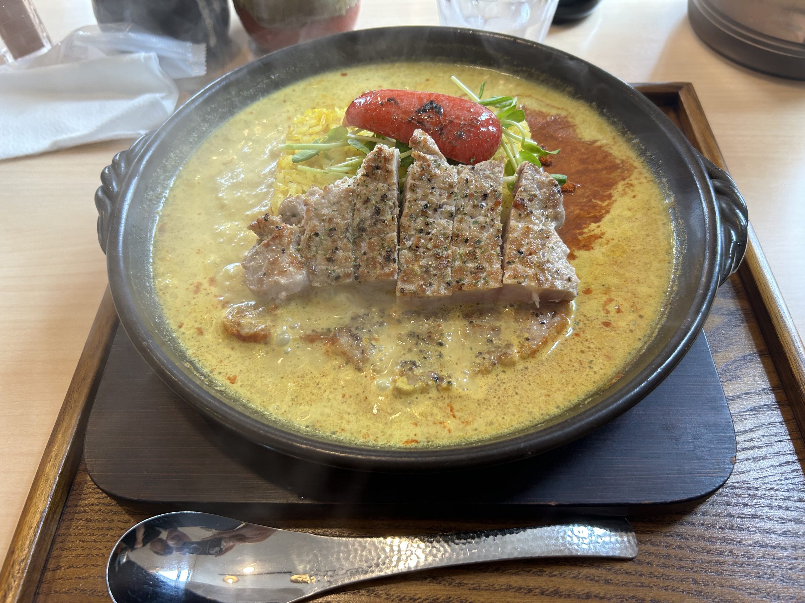 カレーの辛さも選択でき、おすすめの辛さと書いてあったので今回は2辛で頂きました。激熱だったのも加わり、辛さも倍増、もう汗だくになりましたが