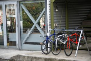 私たちが運営している飲食店「CIMOLO BBQ & Grill」にロードバイクを止めておけるスタンドを設置しました。